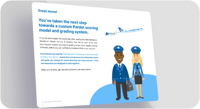 Great move! You’ve taken the next step towards a custom Pardot scoring model and grading system. If you’ve downloaded this worksheet after reading the ‘B2B Marketer’s Handbook: Pardot Scoring & Grading That Works’, you’ll know that planning your custom scoring and grading model has to happen outside of Pardot, before you can confidently implement this in your account. If you haven’t yet read the ‘B2B Marketer’s Handbook: Pardot Scoring & Grading That Works’, download it now because the information inside will guide you during the whole planning and setup process. These two resources are designed to work together. When you’re ready, get started by following the steps below! 2 marcloudconsulting.com